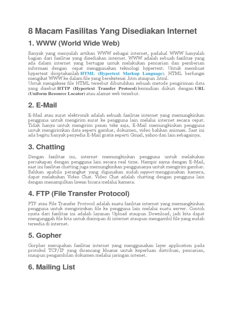 Dari masa ke masa manusia semakin dimudahkan dengan banyaknya produk hasil teknologi komunikasi diantaranya saat ini adalah gadgethandphone. Sebenarnya mungkin banyak sekali aplikasi yang berfungsi sebagai media komunikasi namun disini saya hanya akan memperjelas tentang satu. Play this game to review Computers. Question from Anan2806 - Sekolah Menengah Pertama - Ti. Hal ini dikarenakan membutuhkan waktu untuk mengetik apa yang akan dibicarakan menunggu tanggapan atau balasan dan mengetik kembali apa yang ingin dikatakan. Chatting merupakan fasilitas yang memungkinkan dua orang atau lebih melakukan komunikasi langsung melalui tulisan menggunakan program aplikasi. Banyak penyedia layanan VoIP di internet. Aplikasi internet yang memungkinkan pengambilan file dengan cepat adalah.